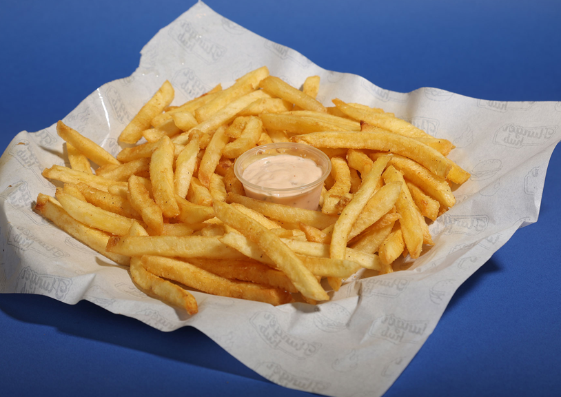 $ 7Two beef patties 140g, cheddar cheese, caramelized onions, burger sauce, dill pickles, bacon