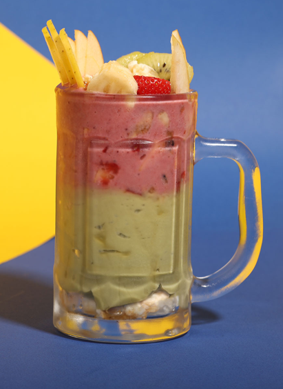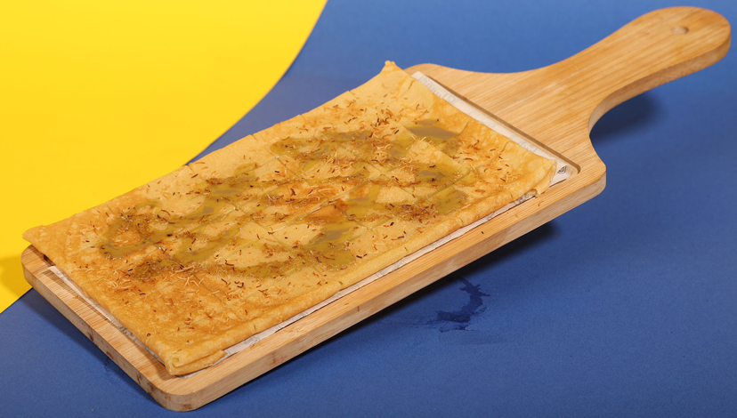 mix of mozzarella, Gruyère, Edam, and aged Parmesan, baked until golden and irresistibly gooey.